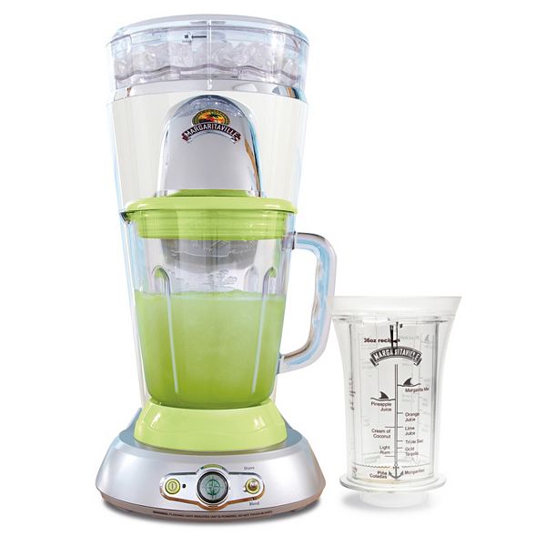 Margaritaville frozen concoction maker shaves ice and blends it carefully with your fresh juices fruits and other ingredients to produce up to 36 oz.