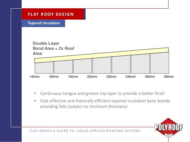 Warm deck the type of insulation for this is usually of a rigid type and the thickness will vary depending on the manufacturer s specifications.